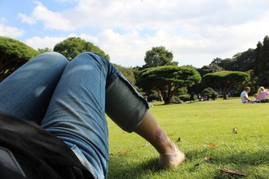 Aquí en Japón, yo soy un alien con un tatuaje en el tobillo. Así, incluso en las calles repletas de gente extravagante, las miradas parecen caer todas sobre mi pierna derecha y la pequeña flor roja al final de ella.